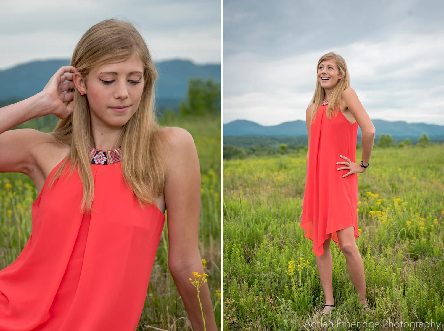 There are some people you will drive two and a half hours to photograph and Megan is one of them! We had been talking about taking her senior photos since last year and I'm so excited that it came to be. The overcast morning proved a beautiful backdrop for our summit setting adding the perfect color contrast to her vibrant dress. As I had never been to this location before (it wasn't a thing back in my day - now I'm sounding old), I got there a few minutes early to scout some possible posing areas. All I knew about the place was that it was a field at the top of a plateau with the potential for a decent view. This sounded like it could be cool, or that it could be a total flop and we would quickly run out of real estate.